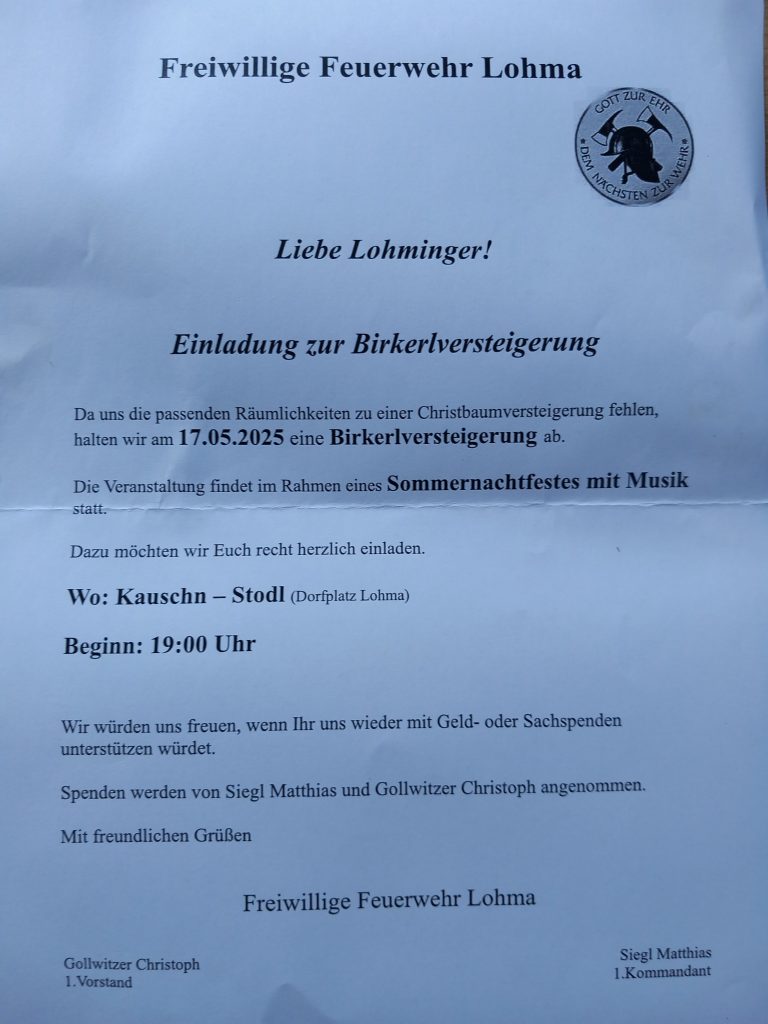 Veranstalter: Freiwillige Feuerwehr Lohma